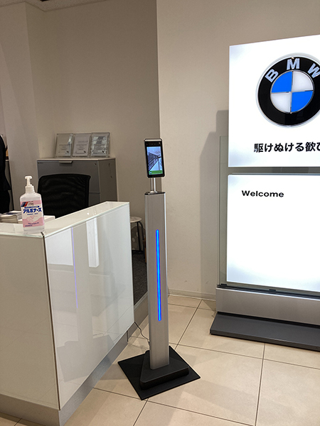 体表温度の測定と同時にAIによる顔認識でマスク着用の有無を判 定。設定温度を、超えた場合はマスク未着用の検出した際には、音 声や警告灯などでお知らせします。