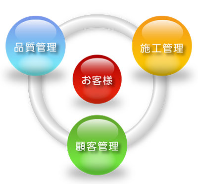 品質から施工、顧客管理に至るまで、お客さまをトータルに支える社内体制を構築しています。それゆえ、一貫してプロジェクトに関わることで、柔軟な対応と高いレスポンスを可能にします。 また、顧客管理の一つとして、24時間365日のお客様からのお問い合わせを承る「技術受付窓口」を設けて万全の体制を整えています。